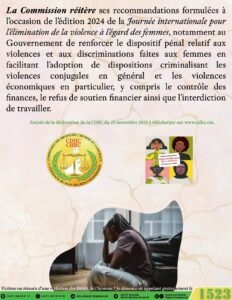 Enfin, la Commission invite les familles et les communautés à dénoncer les auteurs de violences, afin qu’ils soient interpellés, jugés et sanctionnés conformément à la loi.