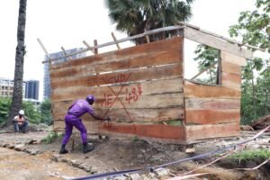 Sur instruction du Maire de la Ville, les équipes de la Communauté Urbaine de Douala ont procédé, ce mercredi 22 avril 2026, à la démolition d’un chantier clandestin situé à Dikolo. Sur ce site, une prétendue galerie d’art était en cours de construction en toute illégalité.