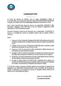 À la fin des travaux de la 76ème réunion du Comité des Ministres de l’ASECNA qui se sont ouverts, ce vendredi 21 novembre 2025 à Dakar au Sénégal sous la présidence du Premier ministre Ousmane Sonko, un communiqué final a été rendu public.